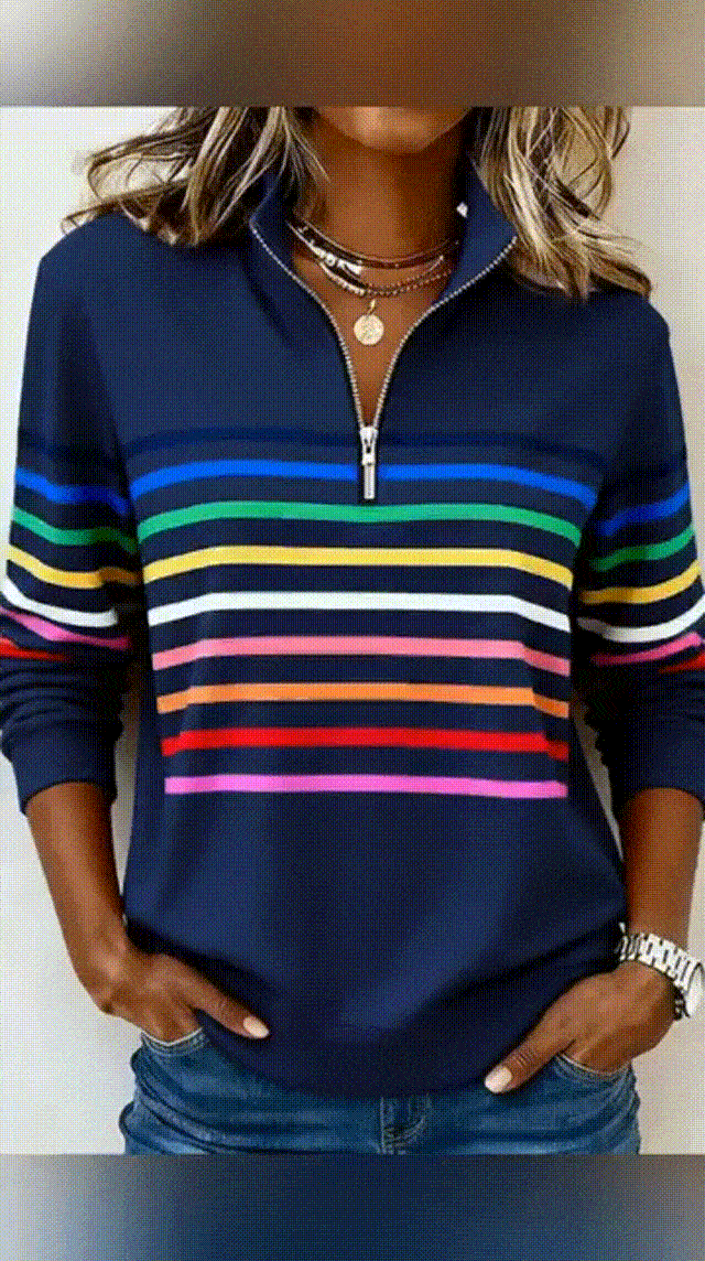 💥 Vibrant stripes that will make your heart flutter at first sight + a convenient half-zip design!