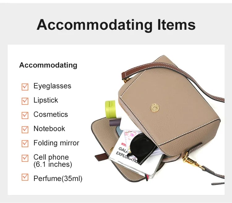Capacity: Phone, wallet, cosmetics, power bank,5-fold umbrella, small bottle