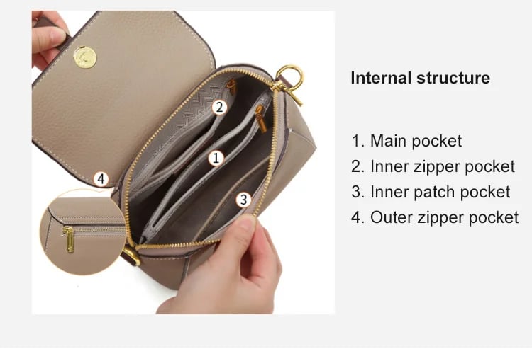 Structure: Main bag*2, inner patch bag*1, zipper hidden bag*1sandwich zipper bag*1